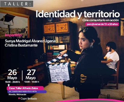 La Secretaría de Cultura de Michoacán (Secum) invita al taller gratuito IDENTIDAD Y TERRITORIO: Cine comunitario en acción, que se llevará a cabo el viernes 26 de mayo de 16:00 a 20:00 horas, y el sábado 27 de mayo de 10:00 a 14:00 horas, en la Casa Taller Alfredo Zalce, en Morelia.