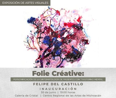 Con un total de 59 piezas artísticas, la Secretaría de Cultura de Michoacán (SECUM) presentará la exposición pictórica Folie Créative: Personificación de la sintomatología de pacientes con trastorno mental, el 30 de junio a las 19:00 horas en el Centro Regional de las Artes de Michoacán (CRAM), de Zamora.