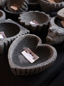 Asimismo, del 10 al 15 de febrero, artesanas y artesanos ofrecerán directamente sus productos en el portal de la Casa de las Artesanías. En este espacio se podrán encontrar blusas bordadas, canastos de fibra vegetal, joyería de laca perfilada, tazas y salseras de alfarería, collares de popotillo y hasta molcajetes en forma de corazón.