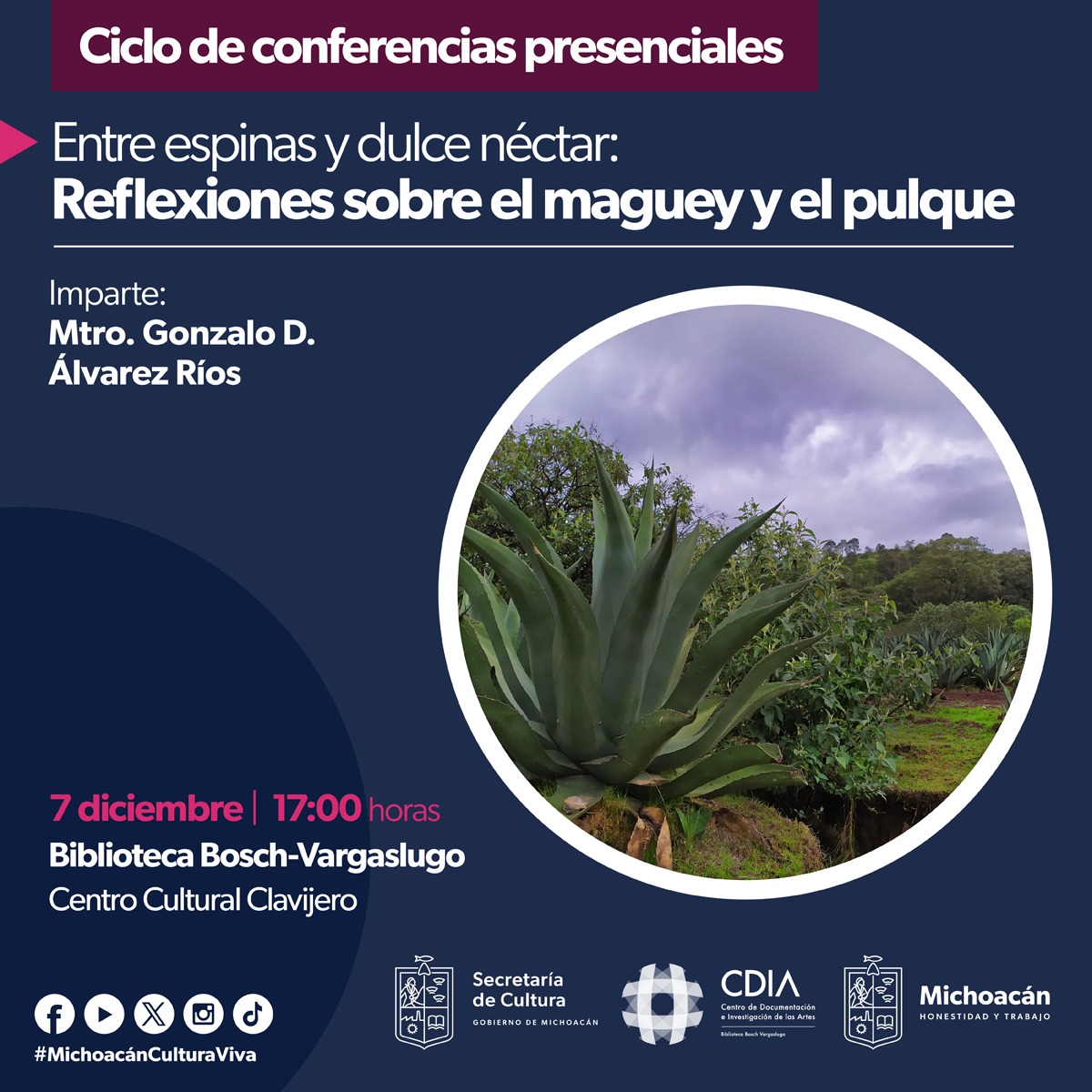 Mediante la presentación de imágenes y actividades con las personas asistentes, el expositor Gonzalo D. Álvarez Ríos, hablará sobre las características de los magueyes y qué los hace plantas tan especiales. Además, explicará cómo distinguir entre diferentes tipos y especies de maguey, por ejemplo, entre un maguey pulquero y uno mezcalero.