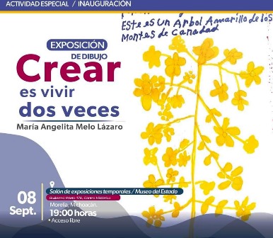 En el marco del Día Mundial del Analfabetismo, la Secretaría de Cultura de Michoacán (Secum) inaugurará la exposición de dibujo “Crear es vivir dos veces”, de la artista María Angelita Melo Lázaro, este viernes 8 de septiembre a las 19:00 horas en el Museo del Estado.