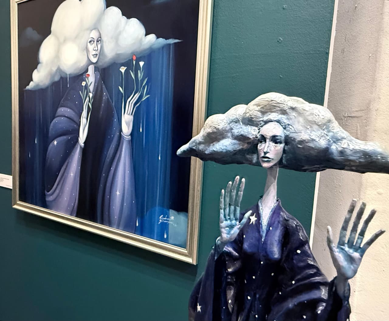 La exposición reúne dieciséis pinturas, nueve esculturas y un mural de gran formato creado especialmente para el recinto. En esta muestra, Pavia despliega un imaginario neosurrealista poblado por mujeres-flor, habitaciones que respiran, universos fantásticos y paisajes que se debaten entre la quietud y la catarsis.