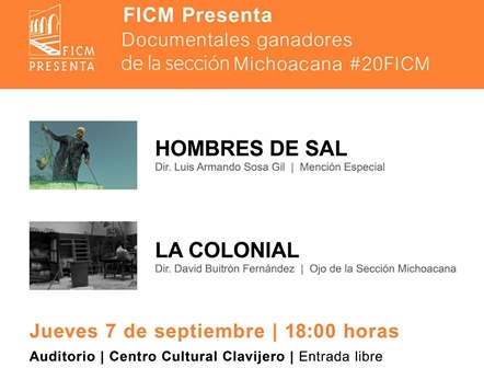 Con el apoyo de la Secretaría de Cultura de Michoacán (Secum), se exhibirán los proyectos ganadores de la 20 edición del Festival Internacional de Cine de Morelia (FICM), como un homenaje a sus realizadores, los días 7, 14 y 28 de septiembre en el auditorio del Centro Cultural Clavijero.