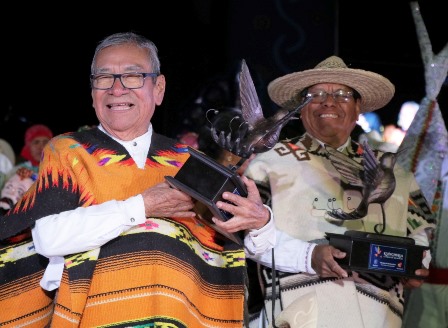 De manos de Tamara Sosa y Roberto Monroy, secretarios de Cultura, y Turismo, respectivamente, recibieron el galardón por su trayectoria: Antonio Gálvez Horta, por 46 años como portador de la tradición de los Tlahualiles de Sahuayo; José Dimas Villa, de Santa Fe de la Laguna, con 66 años de historia como difusores de la pirekua; y Osvaldo Campos Hernández, del Dueto Zacán, por su contribución a la preservación de la composición purépecha.