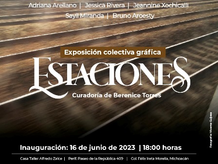 La Secretaría de Cultura de Michoacán (Secum) presentará la exposición gráfica ESTACIONES, a cargo de cinco artistas jóvenes de la gráfica, el 16 de junio a las 18:00 horas en la Casa Taller Alfredo Zalce.