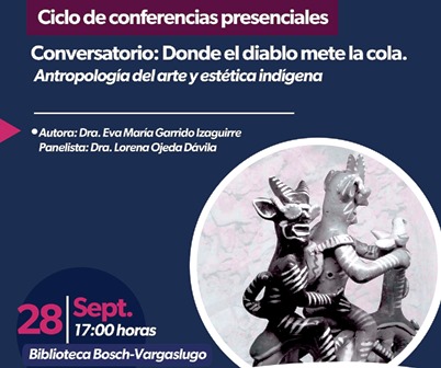 Con motivo de fomentar el intercambio de comentarios y reflexiones del arte, la Secretaría de Cultura de Michoacán (Secum) invita al conversatorio sobre el libro “Donde el diablo mete la cola. Antropología del arte y estética indígena”, deEva María Garrido Izaguirre, a realizarse el próximo 28 de septiembre a las 17:00 horas en la Biblioteca Bosch-Vargaslugo.