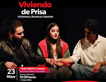 En el marco del Martes de Teatro, la Secretaría de Cultura de Michoacán (Secum) invita este 23 de mayo a la obra musical Viviendo de Prisa, a realizarse a las 19:00 horas en el Teatro Ocampo, con entrada gratuita.