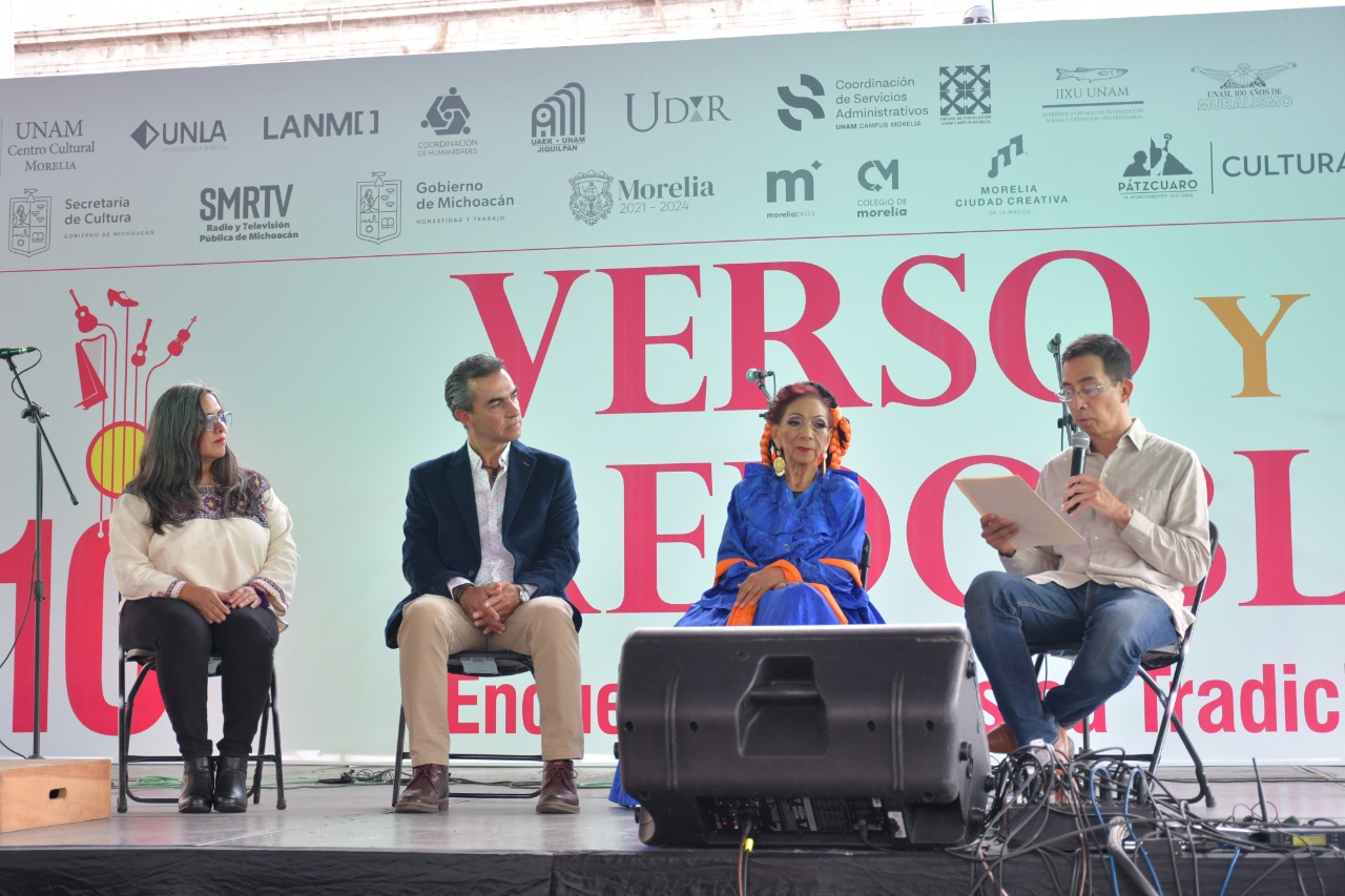 Morelia, Michoacán.- La Secretaría de Cultura de Michoacán (SECUM), en Coordinación con la Escuela Nacional de Estudios Superiores Unidad Morelia (ENES) y el Centro Cultural UNAM, distinguen la labor de la maestra bailarina Genoveva González y del músico Andrés Ávalos, durante la décima edición del Encuentro de Música Tradicional Verso y Redoble.