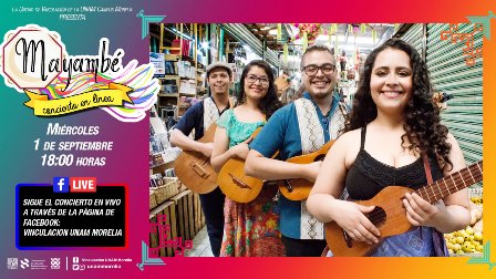 El son jarocho interpretado por Mayambé llega al Programa Artístico a Distancia de UNAM Morelia, el próximo 1 de septiembre, a las 6:00 de la tarde a través de un concierto gratuito transmitido en la página de Facebook: Vinculación UNAM Morelia.
