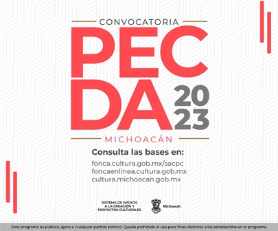 La Secretaría de Cultura de Michoacán (Secum) anuncia los últimos días para participar en el Programa de Estímulo a la Creación y Desarrollo Artístico (PECDA), vigente hasta el 21 de junio del año en curso.