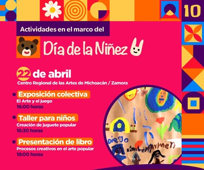 En el marco del Día del Niño y de la Niña, la Secretaría de Cultura de Michoacán (Secum) invita a participar en la exposición El Arte y el Juego, en el taller de Elaboración de juguete popular, y la presentación del catálogo Arte popular y juguete tradicional, el próximo sábado 22 de abril, en Zamora.