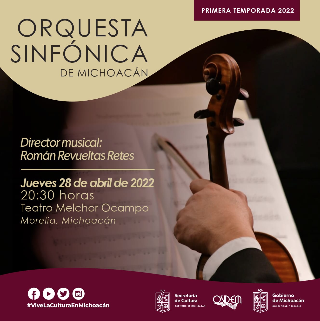 Morelia, Michoacán.- El martes, 26 de abril, a partir de las 10:00 horas, se entregarán los pases de cortesía de la presentación que la Orquesta Sinfónica de Michoacán (OSIDEM) ofrecerá el jueves 28 como parte de su primera temporada de conciertos 2022.