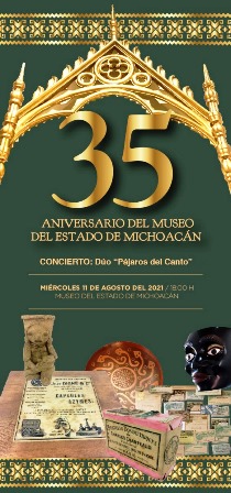 Con un concierto, el Museo del Estado de Michoacán celebrará su 35 aniversario el próximo 11 de agosto a las 6 de la tarde, bajo el auspicio de la Secretaría de Cultura de Michoacán.