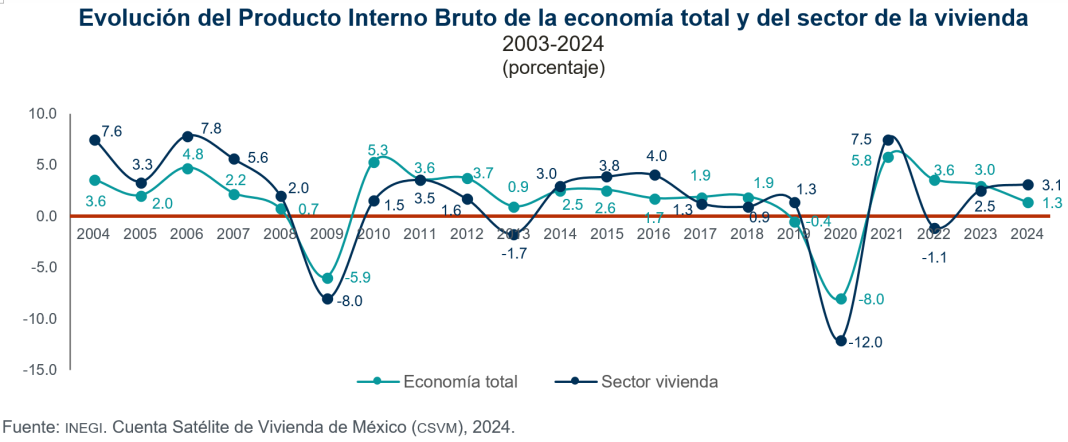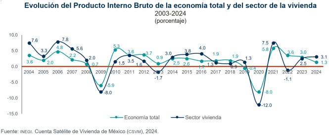 El PIB del sector de la vivienda creció 3.1 % en términos reales, en relación con 2023, mientras que el total de la economía aumentó 1.3 % en el mismo periodo.