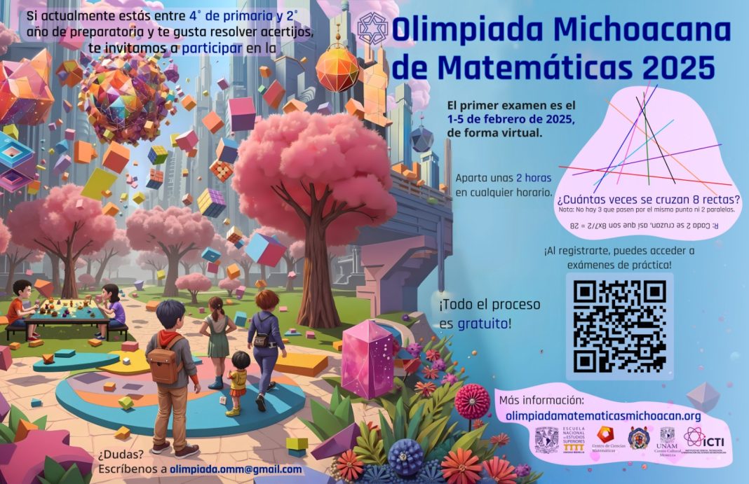 Con el fin de promover el estudio de las matemáticas de forma creativa, lógica y divertida, la delegación en Michoacán de la Olimpiada Matemática busca talento local para conformar la selección que representará al estado en competencias nacionales mixtas y la competencia femenil durante este 2025.