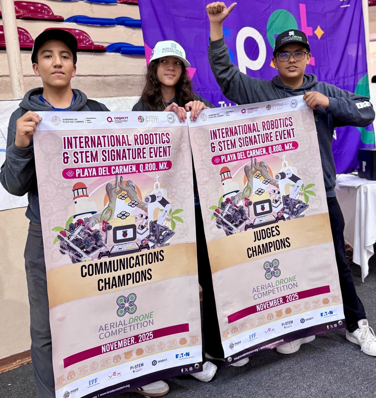 Los tres participantes, de 12, 13 y 14 años, compitieron en Playa del Carmen dentro de la categoría de drones, donde se reunieron equipos de distintos estados del país en el marco de un evento internacional que también contó con delegaciones de diversos países como Estados Unidos, China, Taiwán, Paraguay e India.