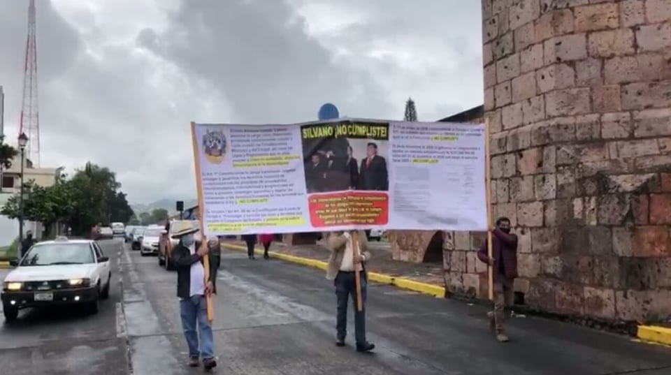 Reclaman, vía altavoz mientras continúan avanzando, también al mandatario saliente Silvano Aureoles, cuyo cuestionado gobierno está por terminar y solo ha golpeado a los trabajadores, siendo perjudicial al quitarles su salario que apenas alcanza para mantener a sus familias, además de que ha incumplido con los aportes que le corresponde dar a la Casa de Hidalgo.