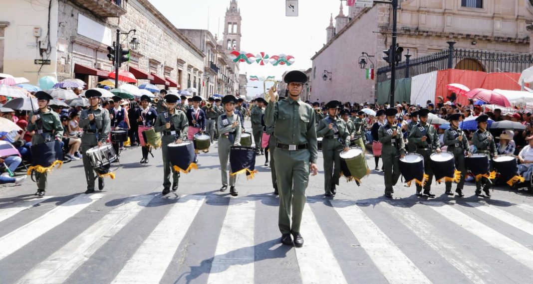 La secretaria de Educación en Michoacán destacó el gran trabajo que realizan día a día docentes y estudiantes en las escuelas del estado; «muestra de eso es que la Federal No. 4 puso en alto a Michoacán en el concurso de bandas se guerra, y ahora engalana el desfile moreliano», expresó.