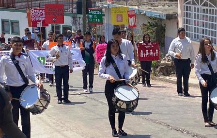 Las y los alumnos desfilaron por las calles de los 54 municipios y localidades donde el subsistema tiene presencia, quienes con gran fervor patrio portaron el lábaro patrio y con orgullo, el banderín de su centro educativo, así como la bandera de la paz.