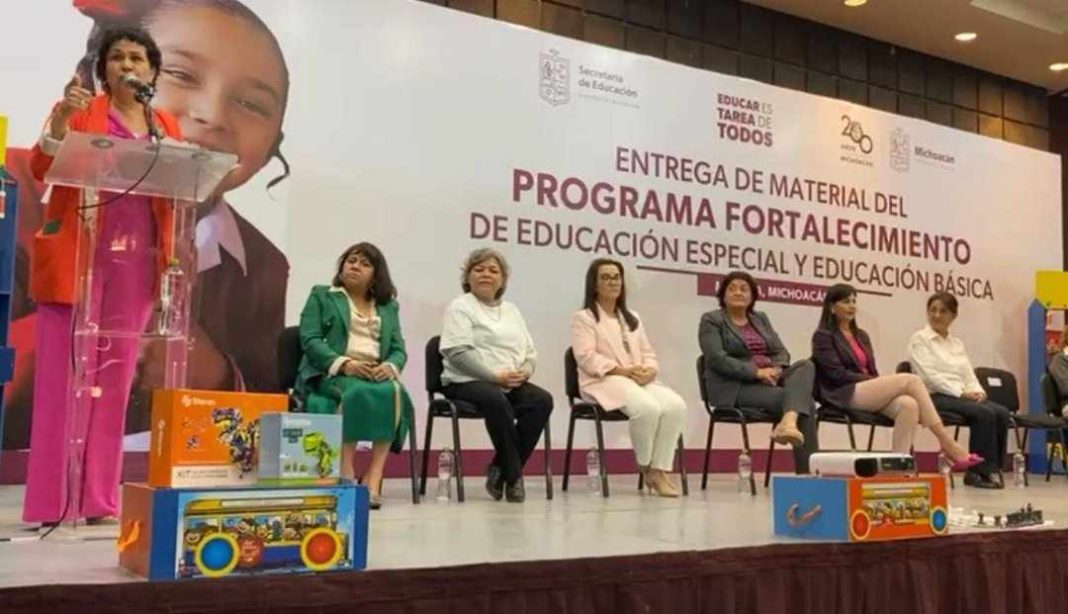 Ello durante la entrega de material para el fortalecimiento de Educación Especial y Educación Básica, ocurrida en el Centro de Convenciones, atestiguada por la titular Gabriela Molina Aguilar, donde la funcionaria definió esta entrega de material diverso para todos los servicios educativos, y dejó en claro que está firme el compromiso para seguir construyendo la Nueva Escuela Mexicana «y la transformación en cada uno de los servicios educativos. Sigamos en lo que falta de esta transformación educativa en Michoacán», instó a los presentes.