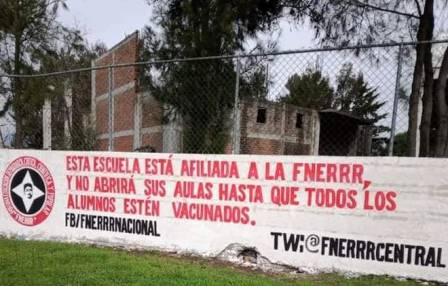 Es así que en Tlalpujahua y Maravatío han colgado mantas o han pintado consignas en las paredes exteriores de los planteles de educación media superior, de inicio, con leyendas como «esta escuela esta adherida a la FNERRR y no abrirá sus puertas hasta que todos los alumnos estén vacunados».