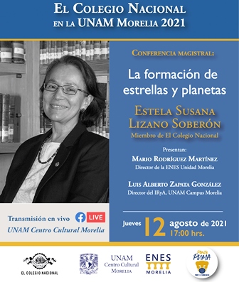En el marco del ciclo El Colegio Nacional en la UNAM Morelia, este jueves 12 de agosto, 2021, se presenta la integrante Susana Lizano con la cátedra “La formación de estrellas y planetas”.