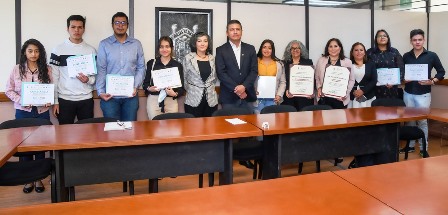 Además, los estudiantes Paris Garibay Tolento, Oscar Jesús Yahuaca Juárez, Aidyl Morelia Tiznado Leyva, Edson Antonio Acosta Aburto, Britzania Flores Hernández, Ma. Isabel Arreygue Nolazco, por haber presentado una de las diez mejores investigaciones en el marco del 10º Encuentro de Jóvenes Investigadores del Estado de Michoacán.