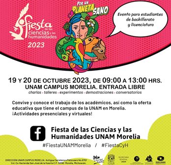 Con más de 60 actividades la Onceava Edición de la Fiesta de las Ciencias y las Humanidades (FCyH) se realizará el próximo 19 y 20 de octubre, en la UNAM Campus Morelia, en un horario de 9:00 a 13:00 horas.