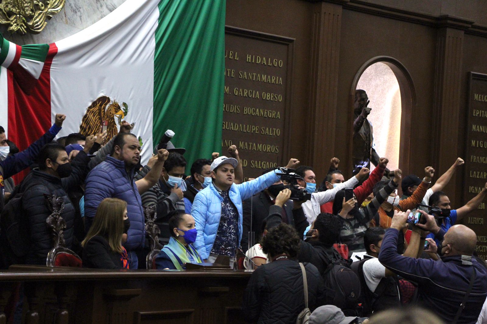 Con consignas en contra del titular del poder Ejecutivo, Alfredo Ramírez Bedolla, los quejosos ingresaron al parlamento michoacano, mientras los legisladores realizaban una sesión ordinaria correspondiente a este jueves.