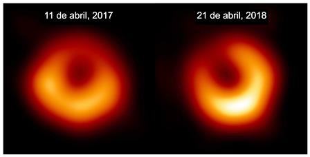 Las nuevas imágenes fueron publicadas en la revista Astronomy & Astrophysics y revelan un anillo del mismo tamaño que el observado en 2017. Este anillo brillante rodea una profunda depresión central, la “sombra del agujero negro”, como predice la relatividad general. Con mucha emoción, la colaboración del EHT encontró que la parte más brillante del anillo se ha desplazado unos 30º en comparación con las imágenes de 2017, lo que es coherente con lo que podemos predecir de forma teórica utilizando modelos sobre el material turbulento alrededor de los agujeros negros.