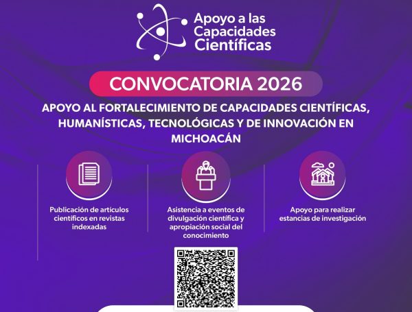 El Instituto de Ciencia, Tecnología e Innovación (ICTI) anunció la apertura de la convocatoria “Apoyo para el Fortalecimiento de las Capacidades Científicas, Humanísticas, Tecnológicas y de Innovación en Michoacán”, dirigida a impulsar la participación de la comunidad académica y científica en actividades de divulgación y formación.