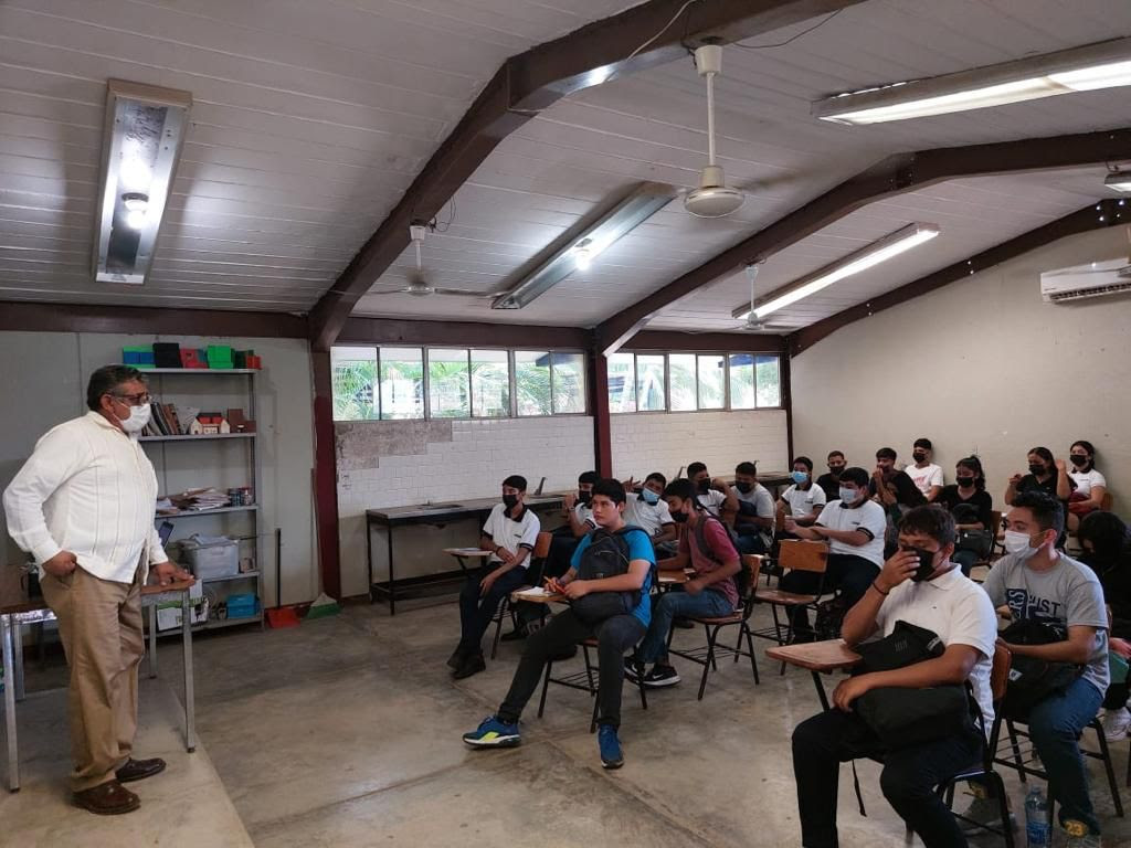 La funcionaria estatal reconoció el gran esfuerzo que realizan los trabajadores de la comunidad bachiller que reciben a las y los jóvenes para cumplir con el calendario escolar oficial e impulsar a los estudiantes a desarrollar las habilidades necesarias.