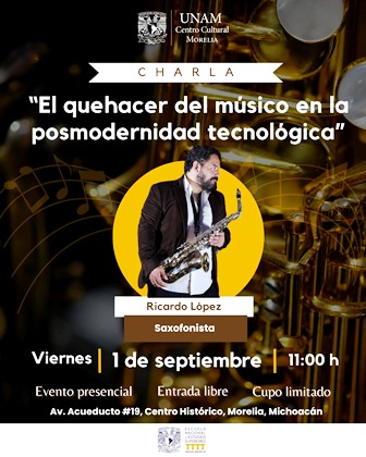 Por la mañana el saxofonista ofrecerá también la charla “El quehacer del músico en la posmodernidad tecnológica” a estudiantes y público interesado, ambos con entrada gratuita.