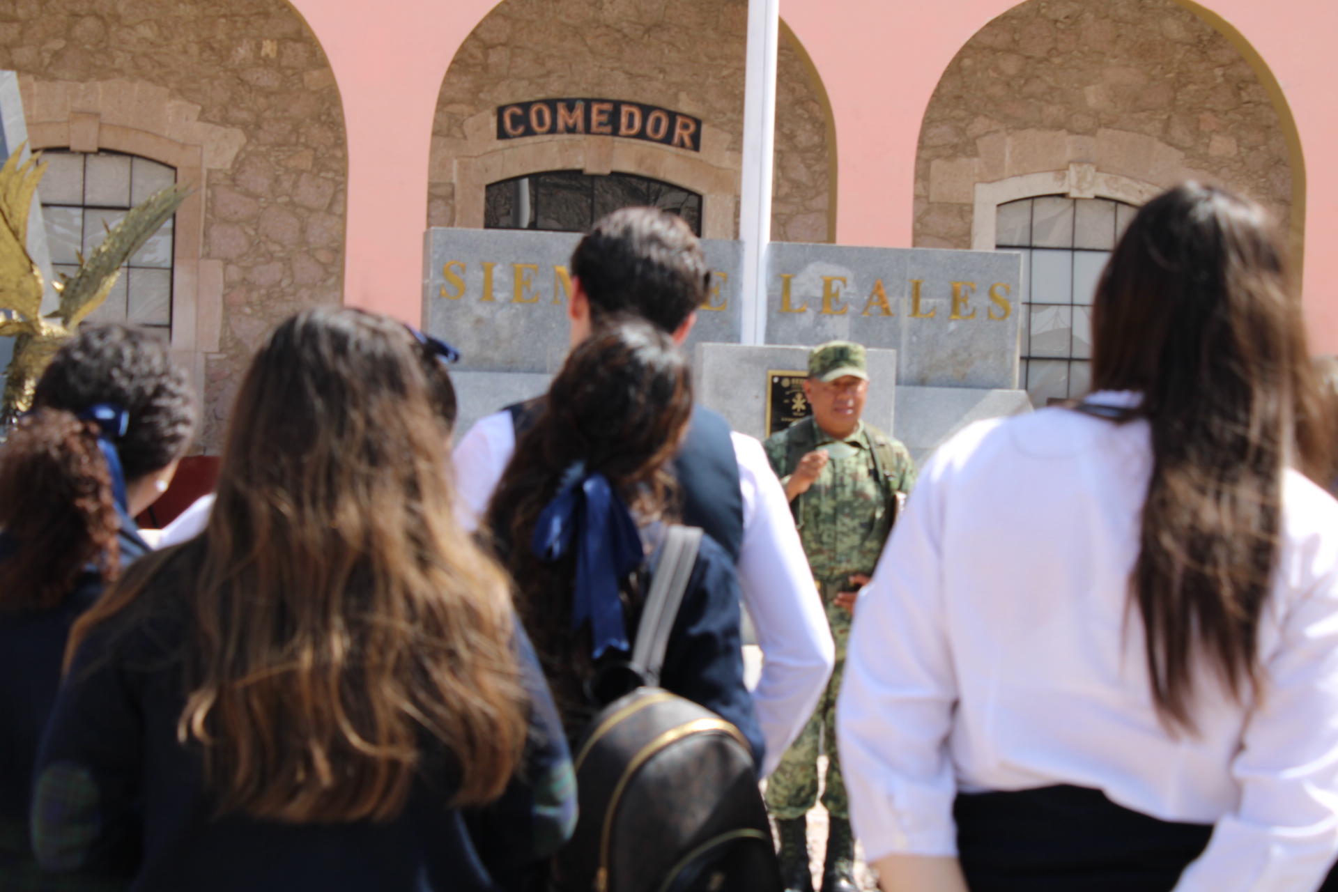 «Orgullo que nos visiten los estudiantes al Batallón», señaló Eduardo Medina Rosas, Teniente de Infantería del 12/o Batallón de Infantería de la 21/a Zona Militar.