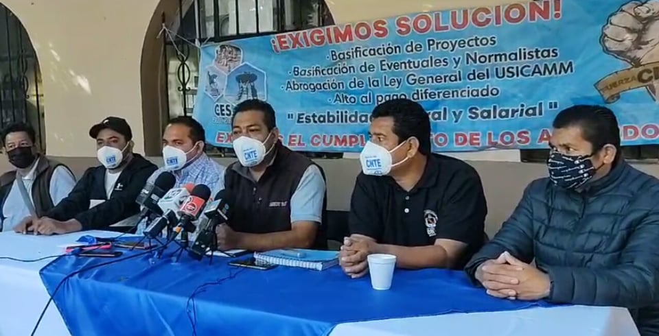 «Nos tienen que pagar a los trabajadores del sistema estatal, esa es la condición primera que estamos poniendo para el regreso a clases» virtuales, dejó en claro. También dijo que la CNTE se ha declarado en alerta ante esta situación de que no tienen pago de su sueldo de parte de gobierno estatal y de que Gobierno de AMLO les quiere obligar a regreso a clases presenciales.