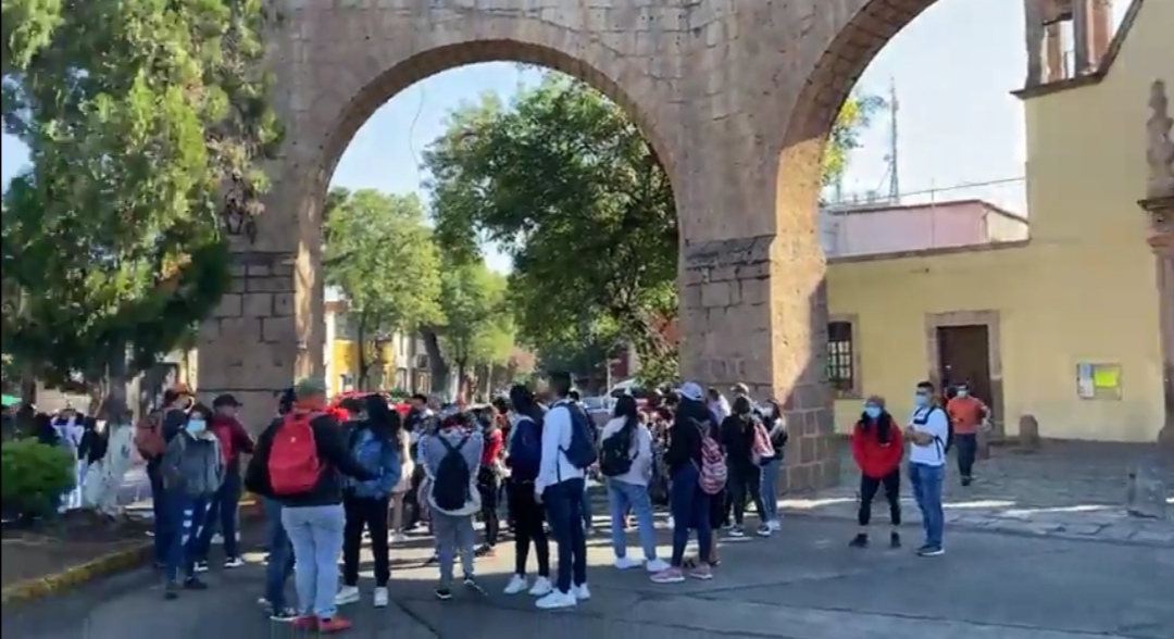 Al continuar con sus protestas en exigencia se les otorguen plazas automáticas, los jóvenes provocan un gran caos vial en esa zona de la capital michoacana.