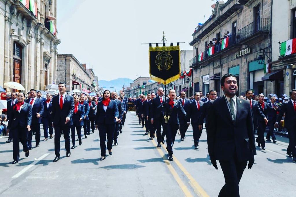 De acuerdo con información del instructor de la Banda de Guerra, Jorge Bautista Martínez, participaron en el contingente 600 nicolaitas, 100 funcionarias y funcionarios de la UMSNH, 42 Banderas Nacionales, 70 estandartes y 42 banderines.