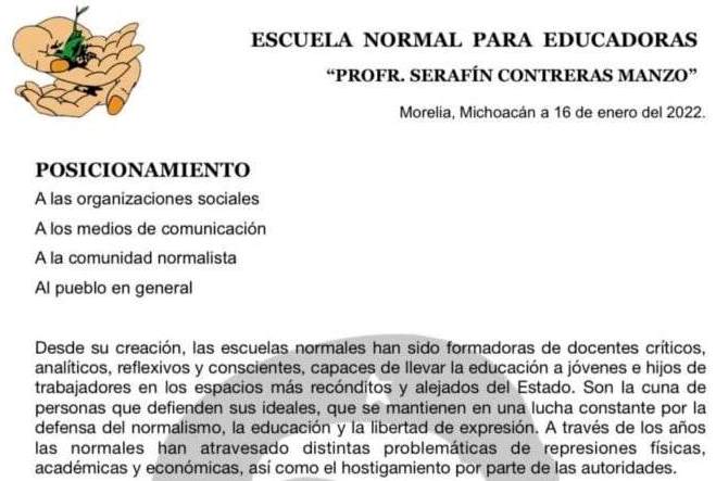 “Como Escuela Normal para Educadoras nos mantenemos en rechazo total a la convocatoria», es su postura emitida en el documento, y por tal no descartan movilizarse en protesta para presionar a la autoridad a cambiar las convocatorias.