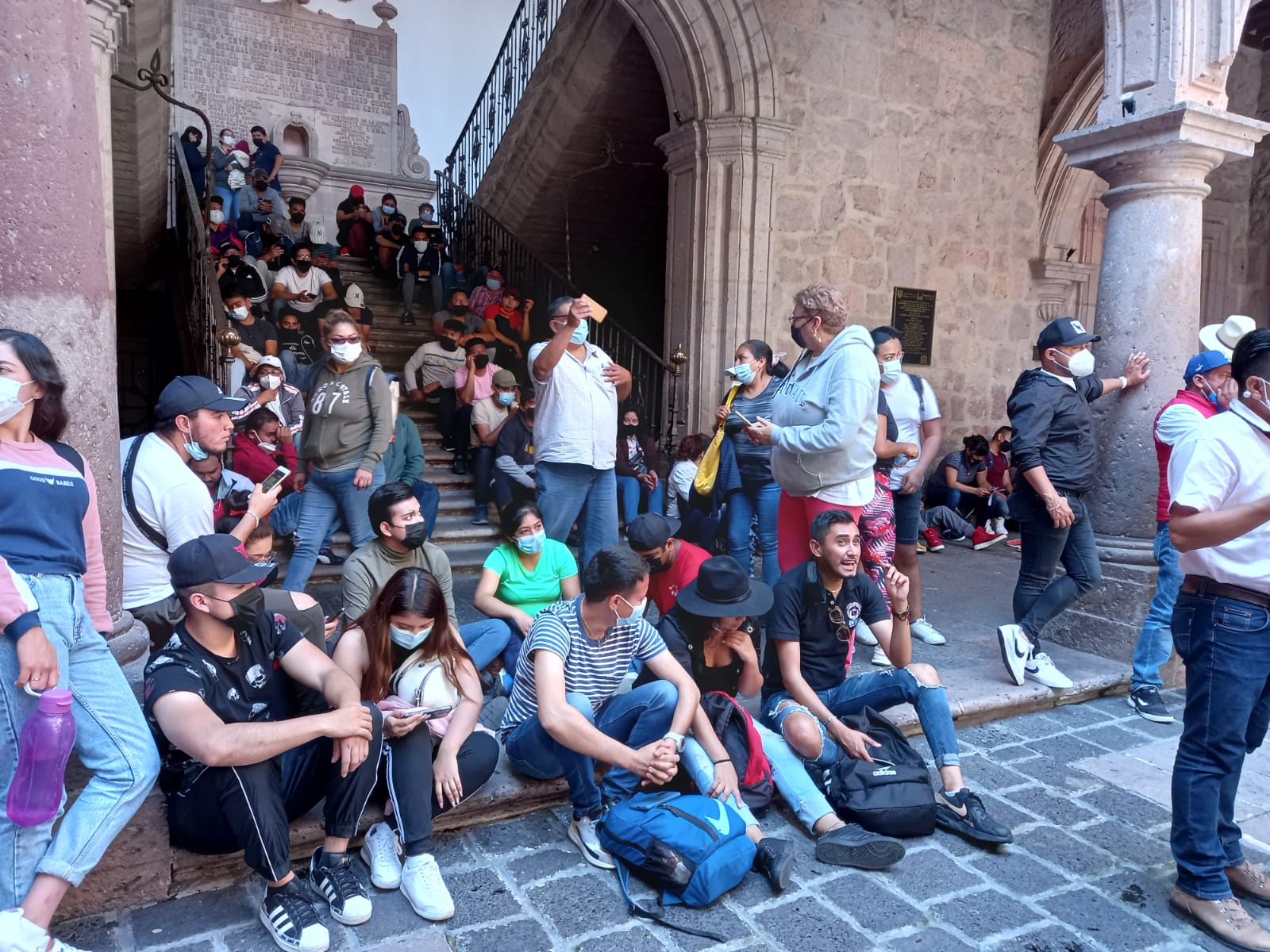 Como parte de las acciones que esta realizando la sección XVIII de la CNTE para exigir sus adeudos de pagos quincenales, este día, se manifiestan los maestros al interior del Ayuntamiento de Morelia y bloquen el tránsito en la calle Allende en sus cruces con las calles Rayón y Galeana.