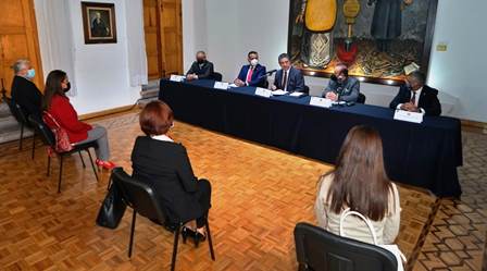 El rector de la Universidad Michoacana de San Nicolás de Hidalgo (UMSNH), Raúl Cárdenas Navarro, y el presidente del Colegio de Contadores Públicos de Michoacán, A.C., Roberto Carlos Estrada Zavala, signaron convenio de colaboración con el que se ratifica el compromiso y la vinculación de esta Casa de Estudos con los diversos sectores de la entidad.