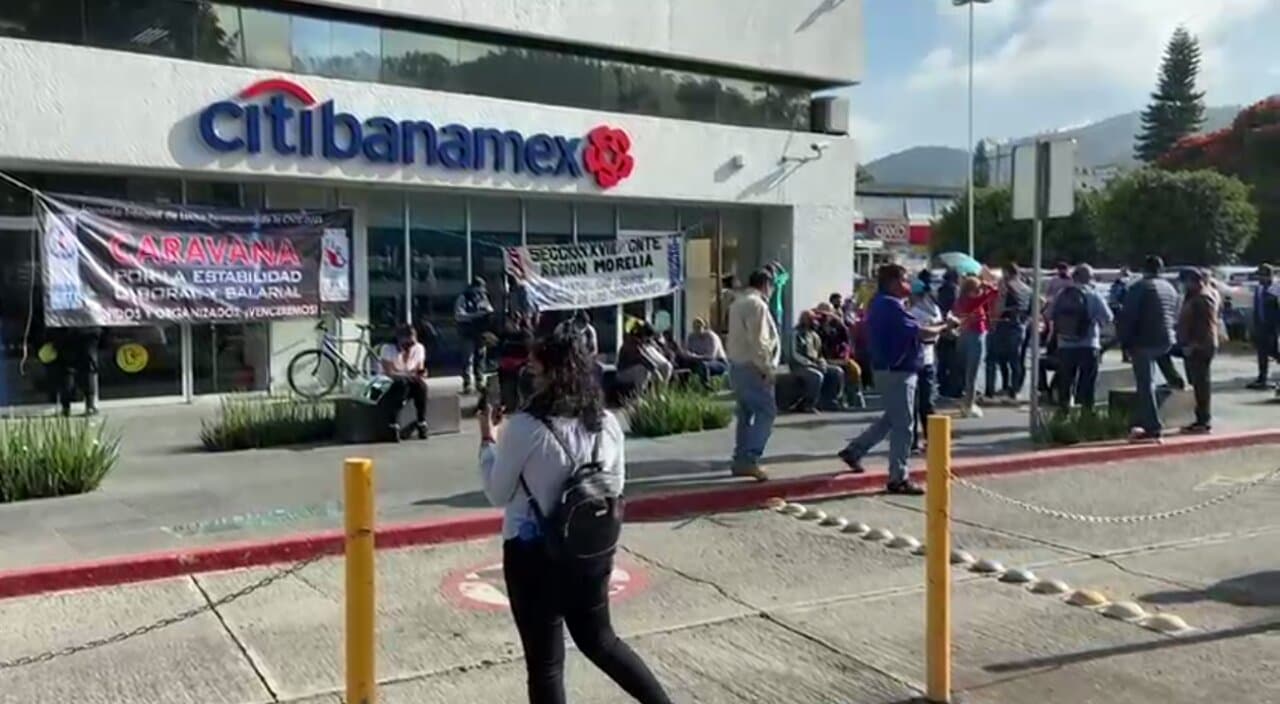 Han cerrado las sedes bancarias que se ubican en esa zona del sur de Morelia, impidiendo el paso de los clientes, colocando mantas con sus consignas de inconformidad por la falta del pago de su salario en tiempo y completo.