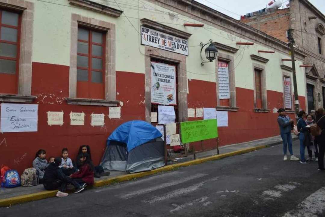 En demanda de la salida de la directora de la escuela primaria Virrey de Mendoza, exigencia por la que pugnan desde hace más de un año por diversas razones e irregularidades, maestras han cerrado el plantel y se han apostado afuera del mismo este viernes, en protesta por la destitución arbitraria de una de las docentes.