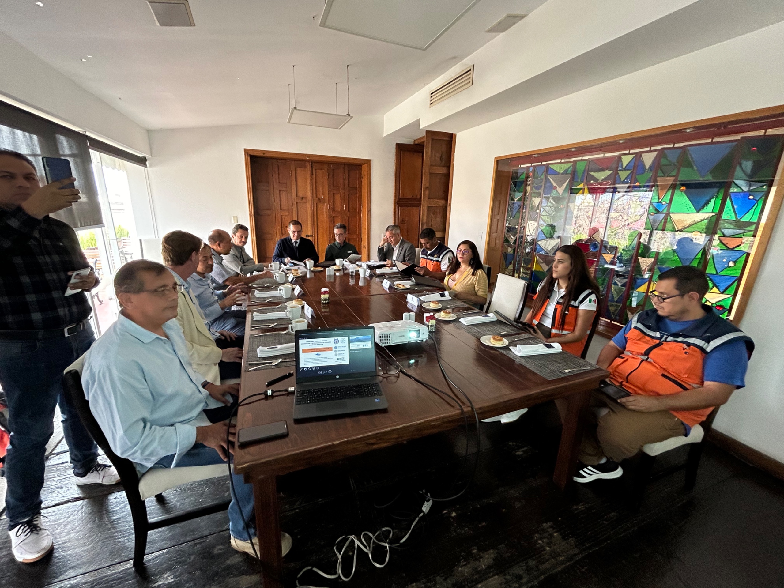 Estuvieron presentes en la reunión el director de Volcano Disaster Assistance Program del Servicio Geológico de los Estados Unidos, Jacob B. Lowenstern; la investigadora del INICIT, Ana Teresa Mendoza Rosas, encargada del proyecto; el subdirector de Instrumentación y Comunicaciones del CENAPRED, Paulino Alonso Rivera; el coordinador general de Estudios de Licenciatura de la UMSNH, Jaime Espino Valencia; la investigadora del INICIT, Ana Teresa Mendoza y el comandante Jorge Romero Alvarado, coordinador Estatal de Protección Civil del Estado de Michoacán.
