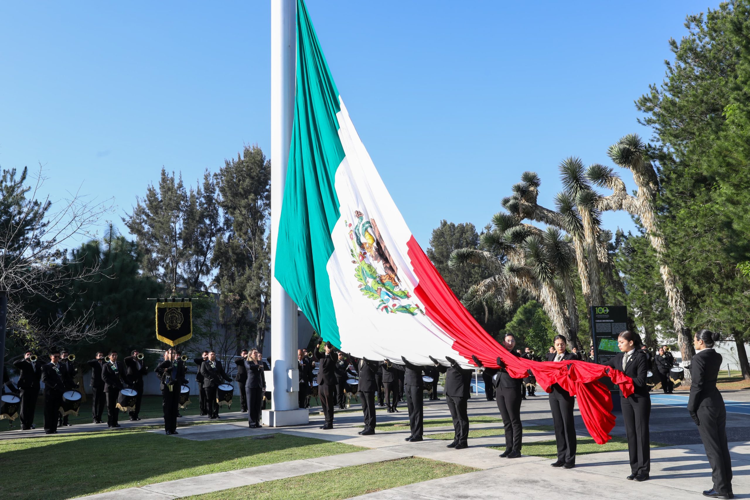 Flanqueada por las y los integrantes del Gabinete Legal, la rectora izó la Bandera Nacional en la plaza Nicolaita del Arte y la Cultura, ubicada en Ciudad Universitaria y posteriormente se rindieron honores al Lábaro Patrio.
