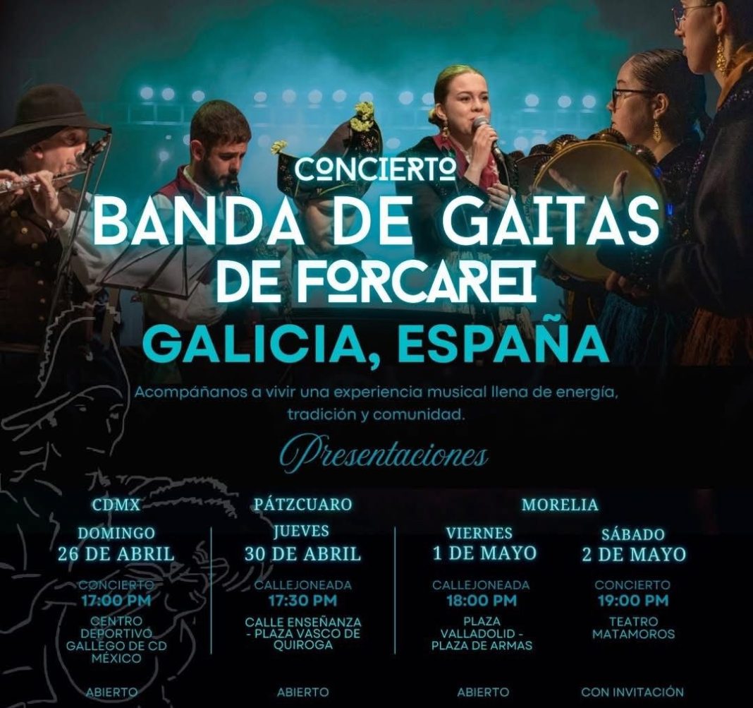 El coordinador de la Banda de Gaitas de Forcarei, Alberto Fernández Sánchez, destacó que esta visita es una oportunidad para acercar a las y los michoacanos a la música gallega. “Fomenta el diálogo cultural, el reconocimiento de nuestras raíces y proyecta a Michoacán como un destino que celebra la diversidad. Solo habrá tres presentaciones: una en la Ciudad de México y dos en este estado”, precisó.