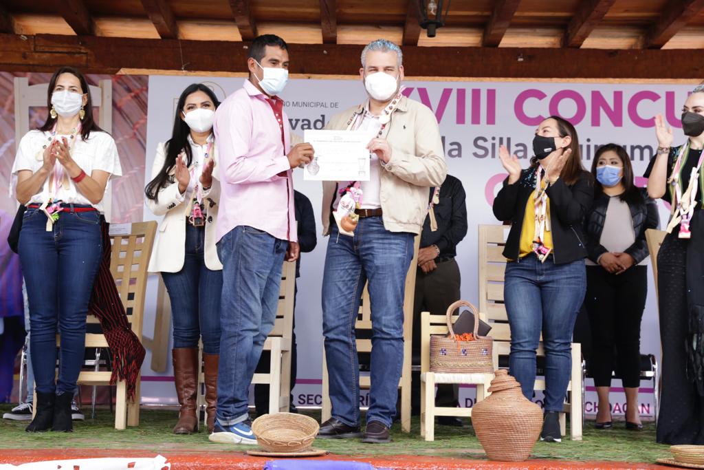 En su intervención como invitado en la entrega de reconocimientos y premios del XVIII Concurso de la Silla, Huinumo y Textil de Opopeo, reiteró su compromiso de trabajar por el desarrollo del estado y de la mano de los michoacanos así como fortalecer las acciones en beneficio de la población.