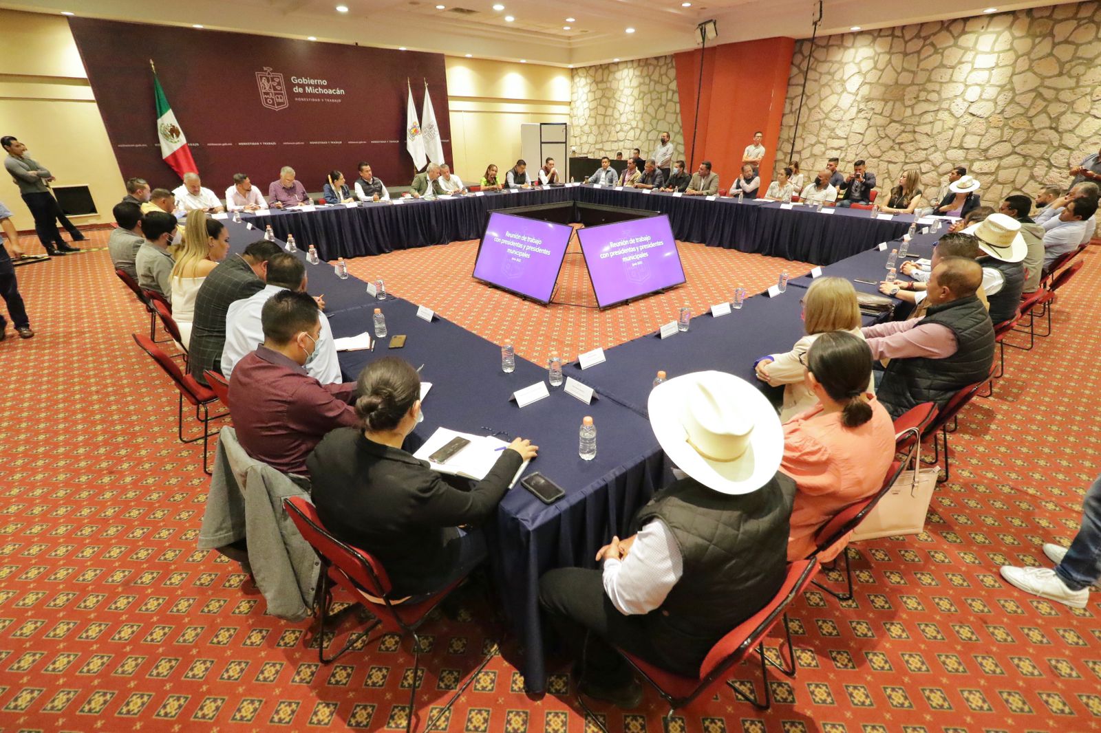 En la reunión participaron los secretarios de Gobierno, Carlos Torres Piña, el de Finanzas y Administración (SFA), Luis Navarro García y el de Comunicaciones y Obras Públicas (SCOP), José Zavala Nolasco; el vocal ejecutivo del Centro Estatal para el Desarrollo Municipal, Jesús Mora y la presidenta estatal de Morena, Giulianna Bugarinni.