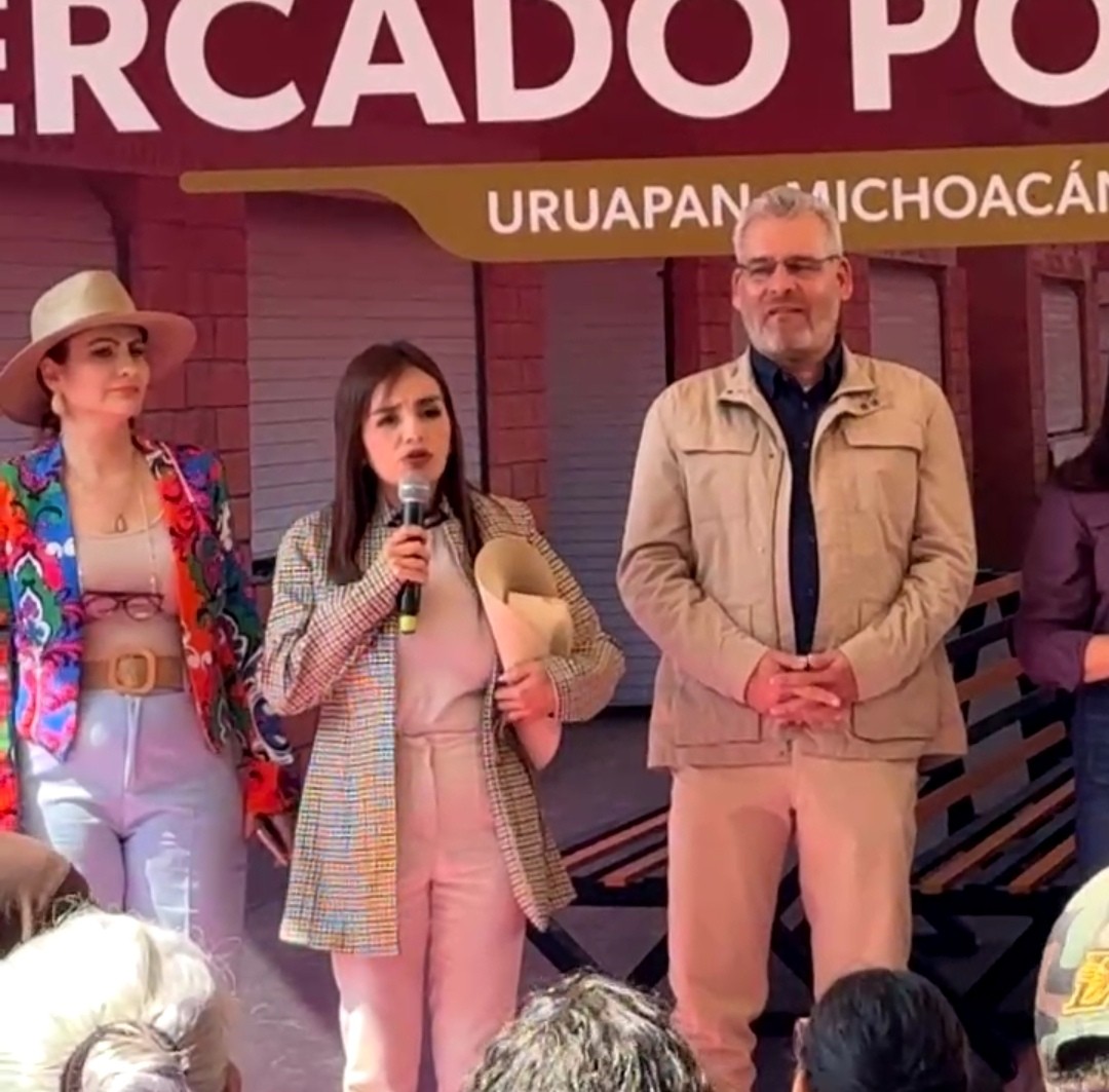 La Presidenta Municipal sustituta de Uruapan, Grecia Quiroz García asistió a lo que fue su primer evento público con autoridades estatales para inaugurar el mercado poniente de Uruapan.