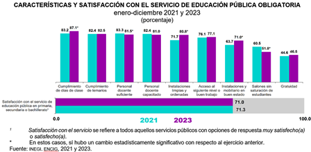 En 2023, 87.1 % de la población usuaria del servicio de educación pública en primaria, secundaria o bachillerato refirió que se cumplió con los días de clase.