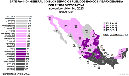 La Encuesta Nacional de Calidad e Impacto Gubernamental (encig) 2023 proporciona información sobre el grado de satisfacción respecto a servicios públicos básicos y bajo demanda entre la población de 18 años y más que reside en localidades con al menos 100 mil habitantes. Además, la encuesta ofrece información sobre la experiencia de la ciudadanía al realizar pagos, trámites, solicitudes de servicios públicos y otro tipo de contactos con autoridades en 2023. La ENCIG también recaba datos sobre la prevalencia de actos de corrupción y estima la percepción de este fenómeno entre la población.